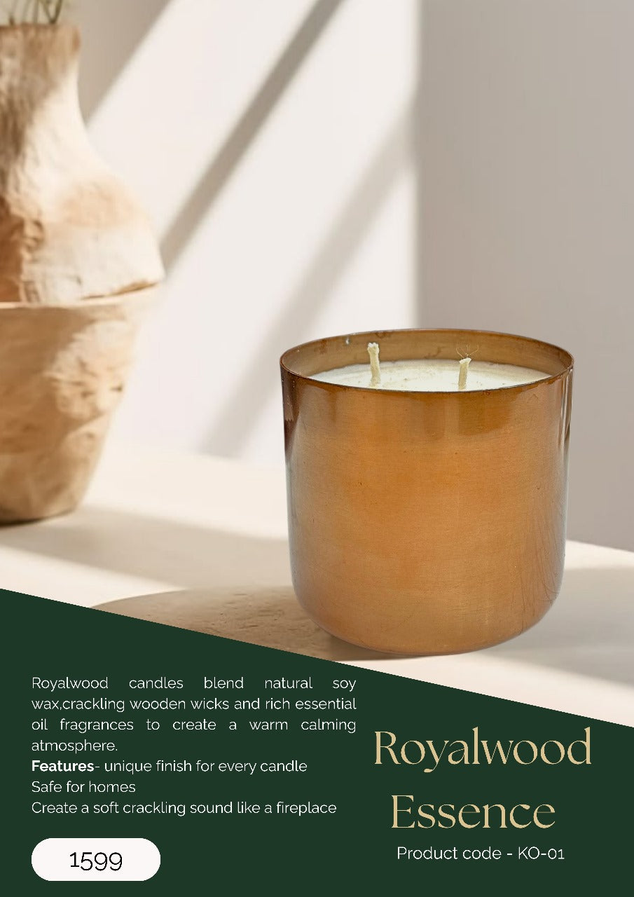 Bring the warmth of a fireside evening into your home with Royalwood Essence. Hand-poured with natural soy wax and infused with rich essential oil blends, this candle is designed to ground your space in serenity and gentle luxury.